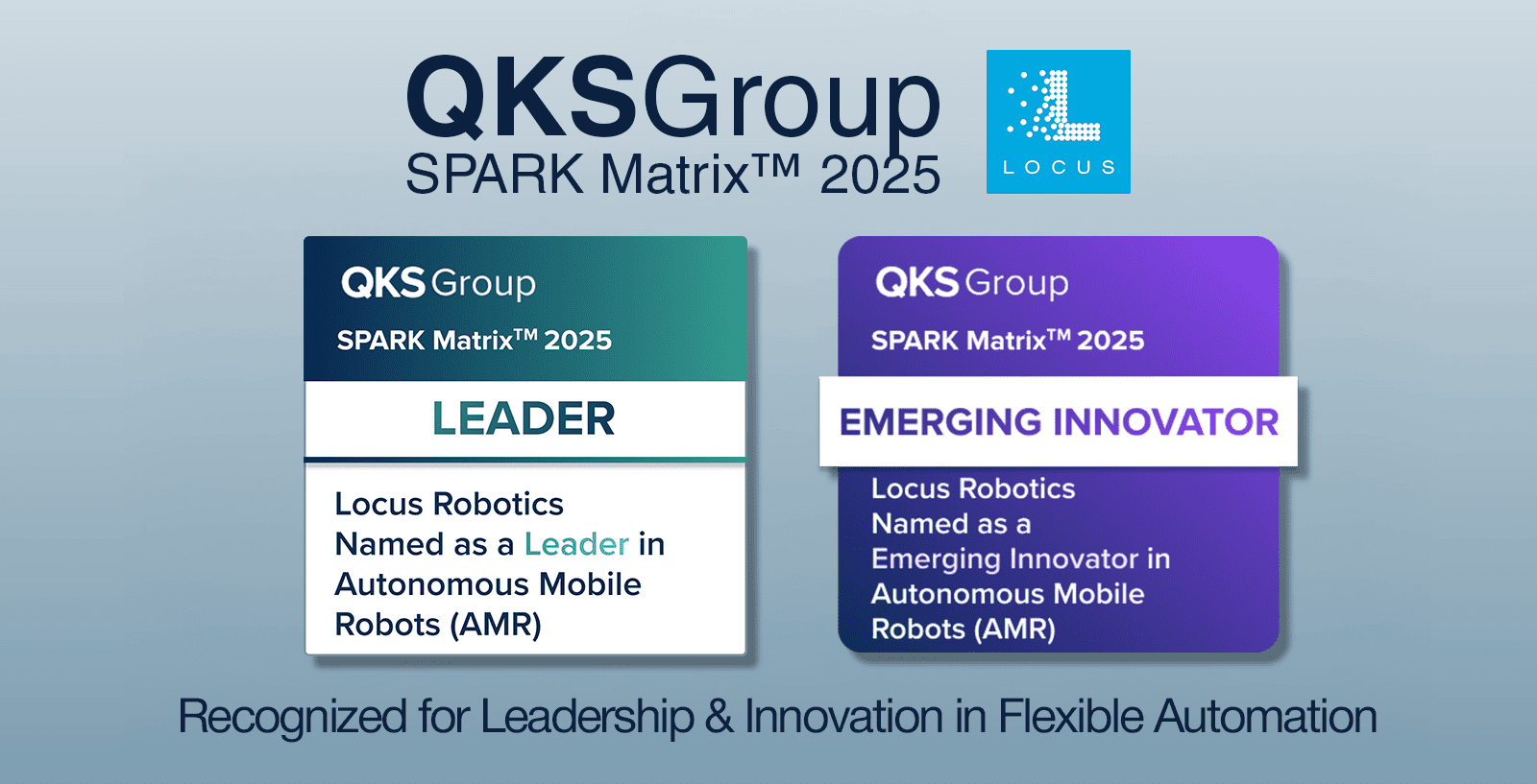 WILMINGTON, Mass., September 30, 2025 – Locus Robotics, the global leader in AI-driven, mobile warehouse automation, today announced it has been positioned as the top Leader and Emerging Innovator in the Q3 2025 SPARK Matrix™ for Autonomous Mobile Robots (AMR) by QKS Group. This marks the fifth consecutive year Locus Robotics has been recognized in the influential industry assessment, with its highest ranking to date for technology excellence and customer impact.