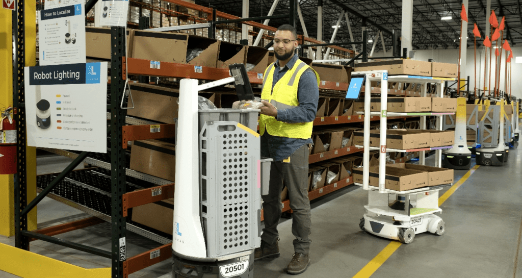Freed from being stuck at a pick station, hauling a heavy cart, or trudging behind a slow “follow-bot,” each associate instead interacts with multiple cobots, dramatically improving productivity and order cycle times.