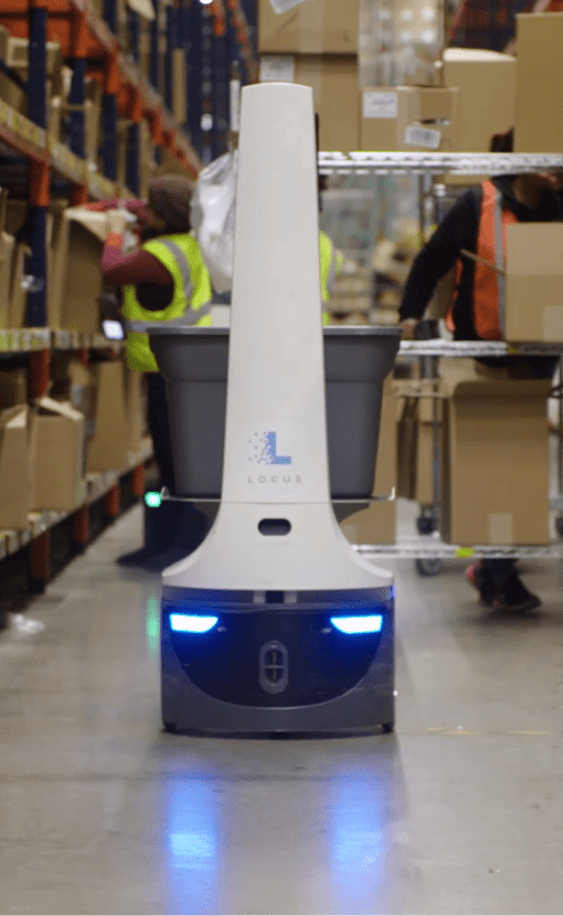 Locus’s innovative, AI-driven picking robots optimize worker productivity by actively directing workers to their next pick location. LocusONE’s intelligent optimization eliminates non-value-added roaming or patrolling of aisles. Instead, LocusONE visually guides workers to their next closest pick opportunity, reducing lost time for repetitive decision making and minimizing unproductive walk time.